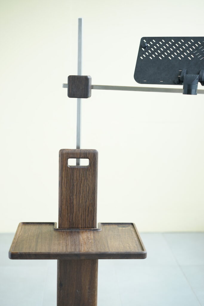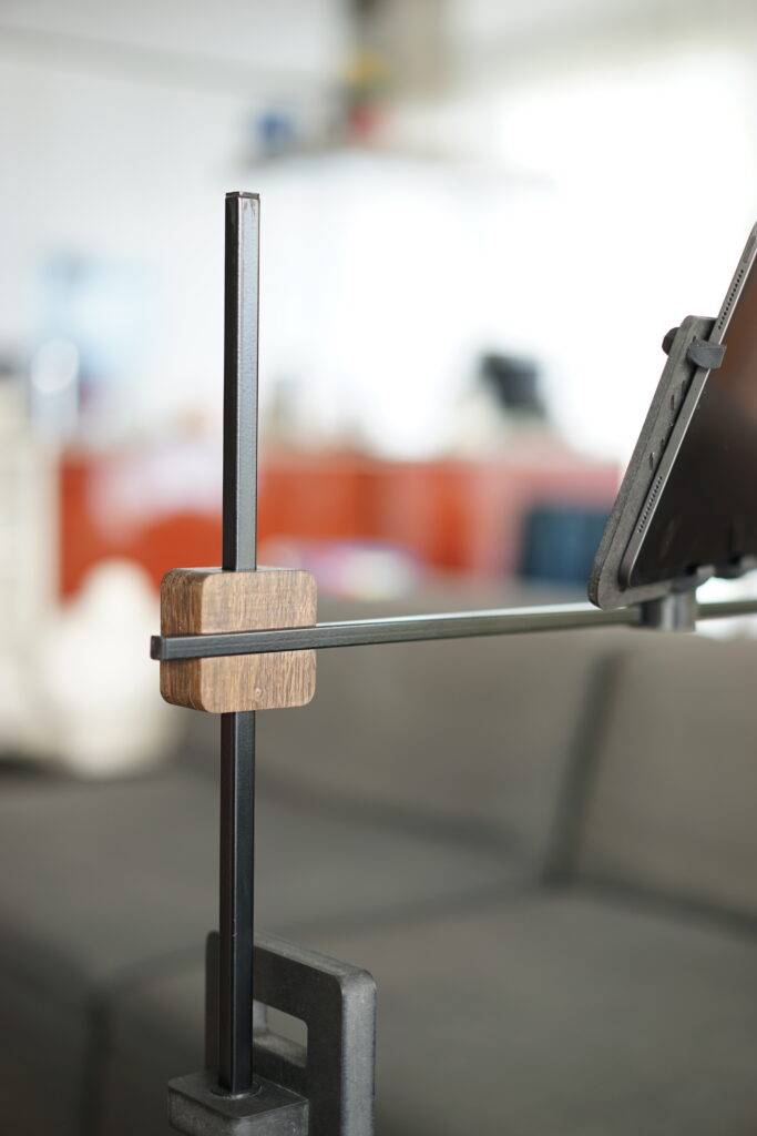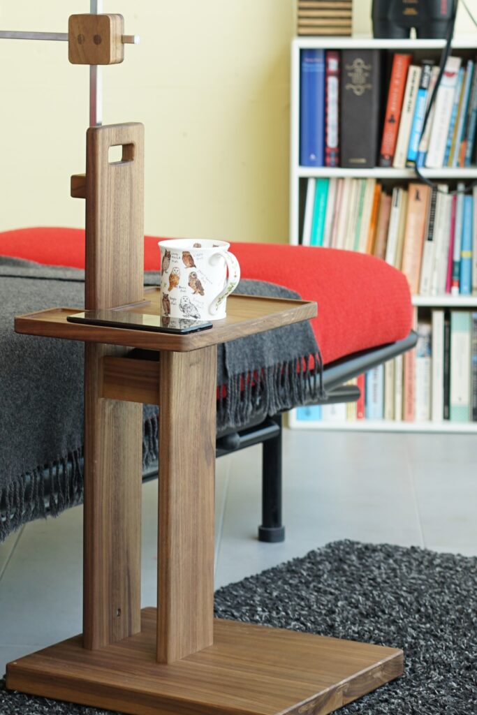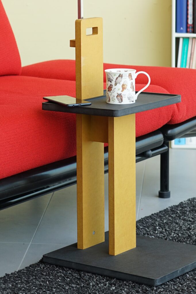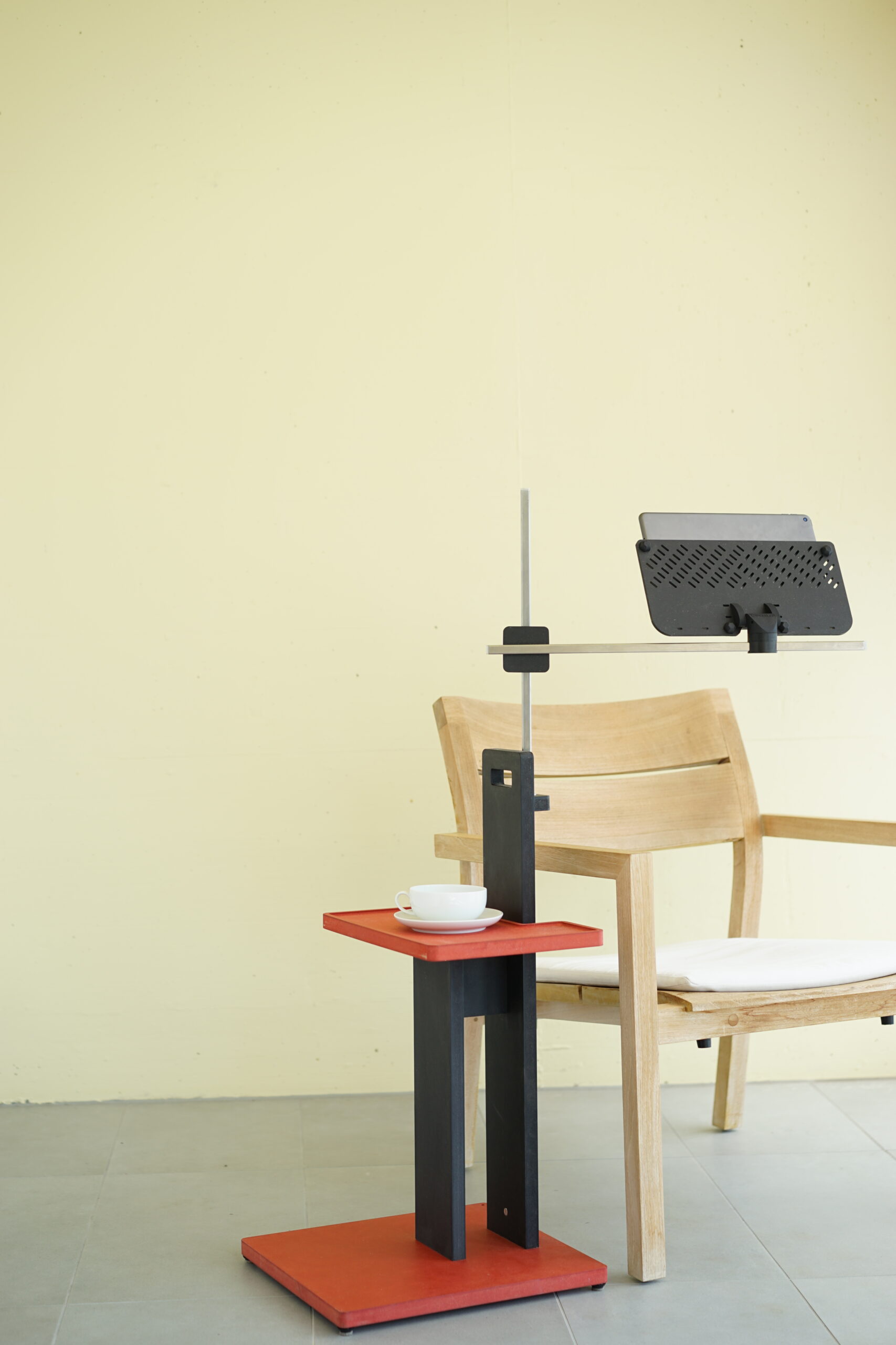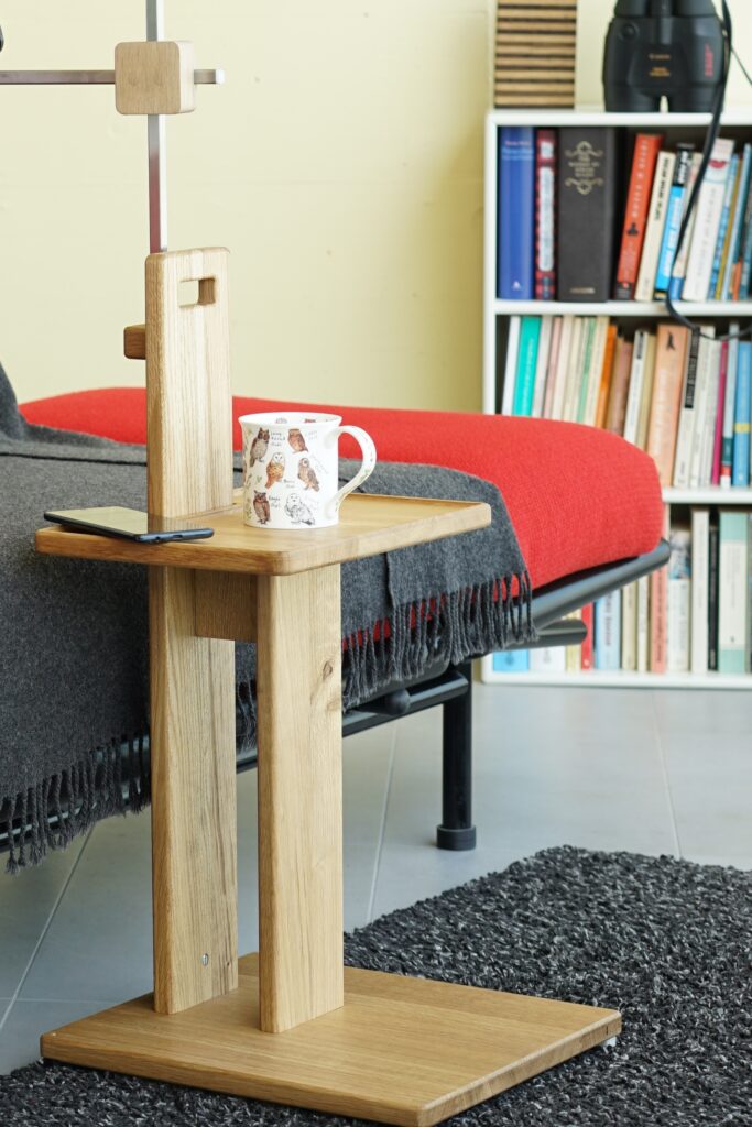 This floor stand is both tablet holder and side table! It allows you to use your tablet, e-book reader, or mobile phone comfortably when sitting, reclining, or even lying in an armchair, a bed, or on the sofa. The side table does what side tables are for! It allows you to place items such as your phone, a cup, a pen etc. within easy reach.