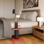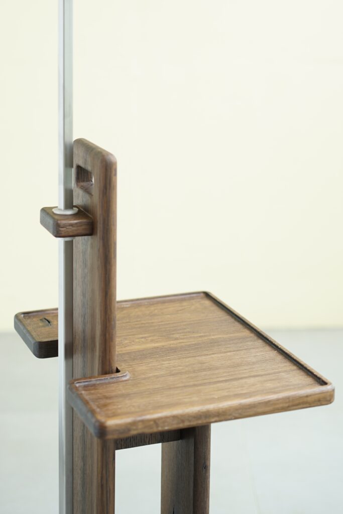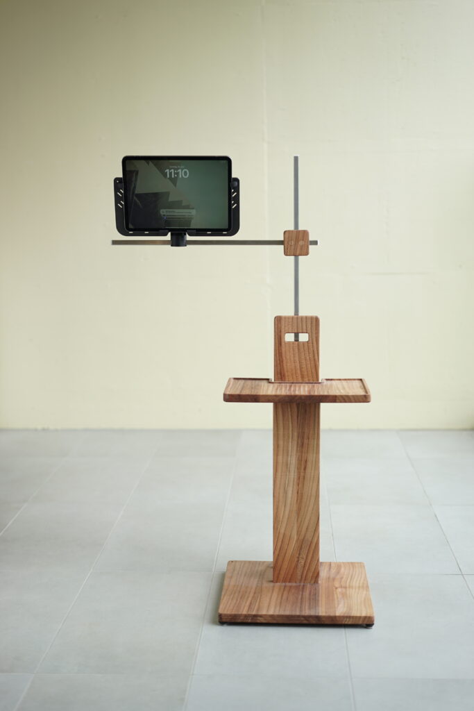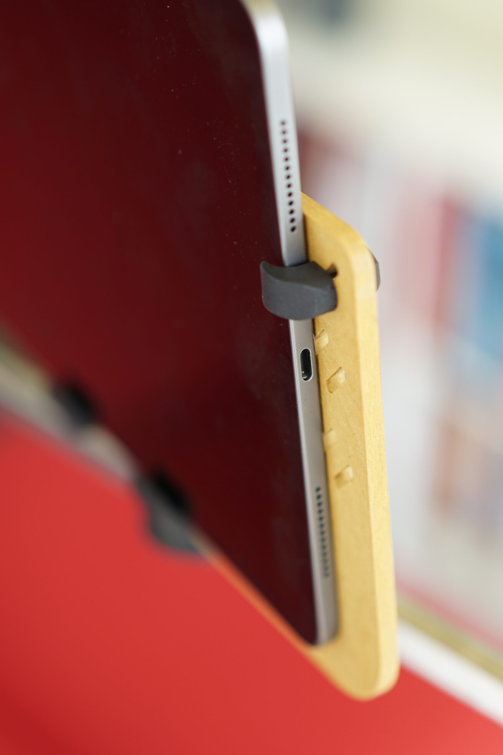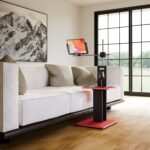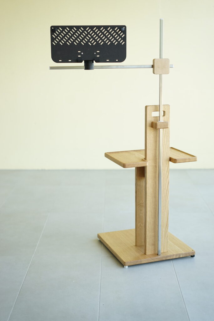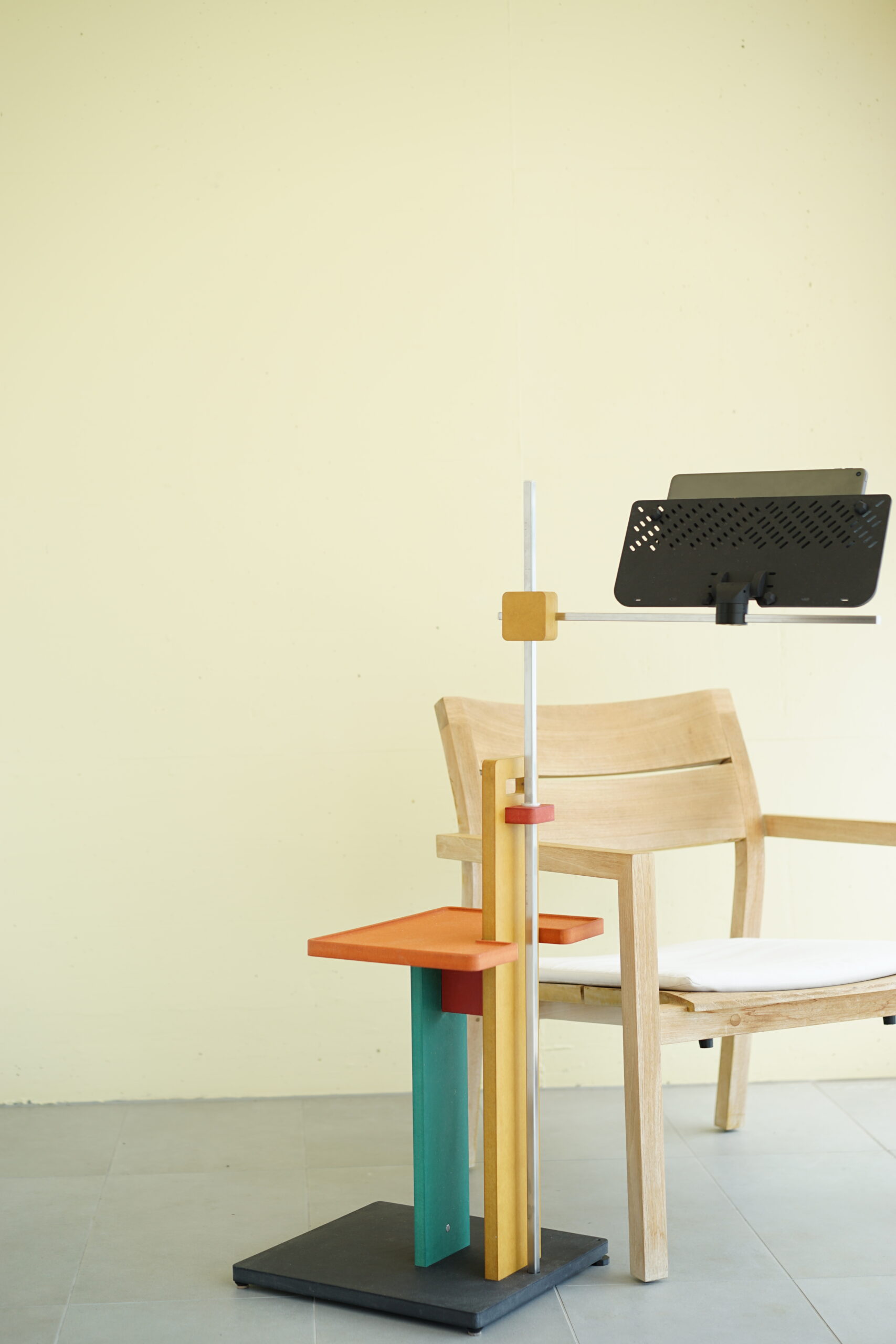 This floor stand is both tablet holder and side table! It allows you to use your tablet, e-book reader, or mobile phone comfortably when sitting, reclining, or even lying in an armchair, a bed, or on the sofa. The side table does what side tables are for! It allows you to place items such as your phone, a cup, a pen etc. within easy reach.
